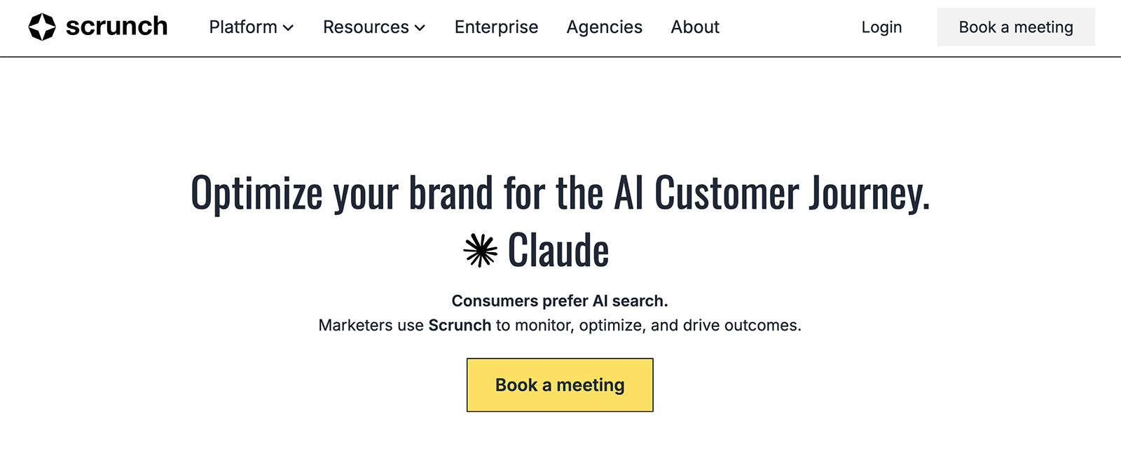 Scrunch is a GEO optimization tool that monitors and guides the AI customer journey. It helps marketers understand their brand’s competitive positioning, identify content gaps, resolve misinformation, and ensure AI bots surface what customers are looking for.