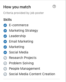 - Some listings will show your current skills and how you match up to what the job poster is looking for. It looks like this, and they’re a gold mine